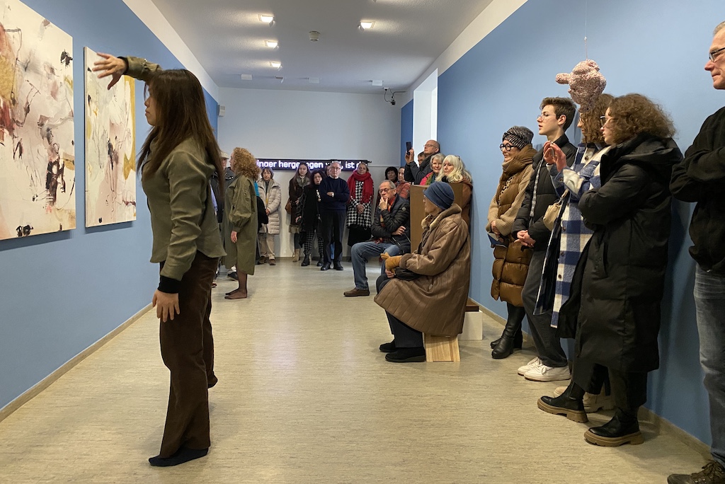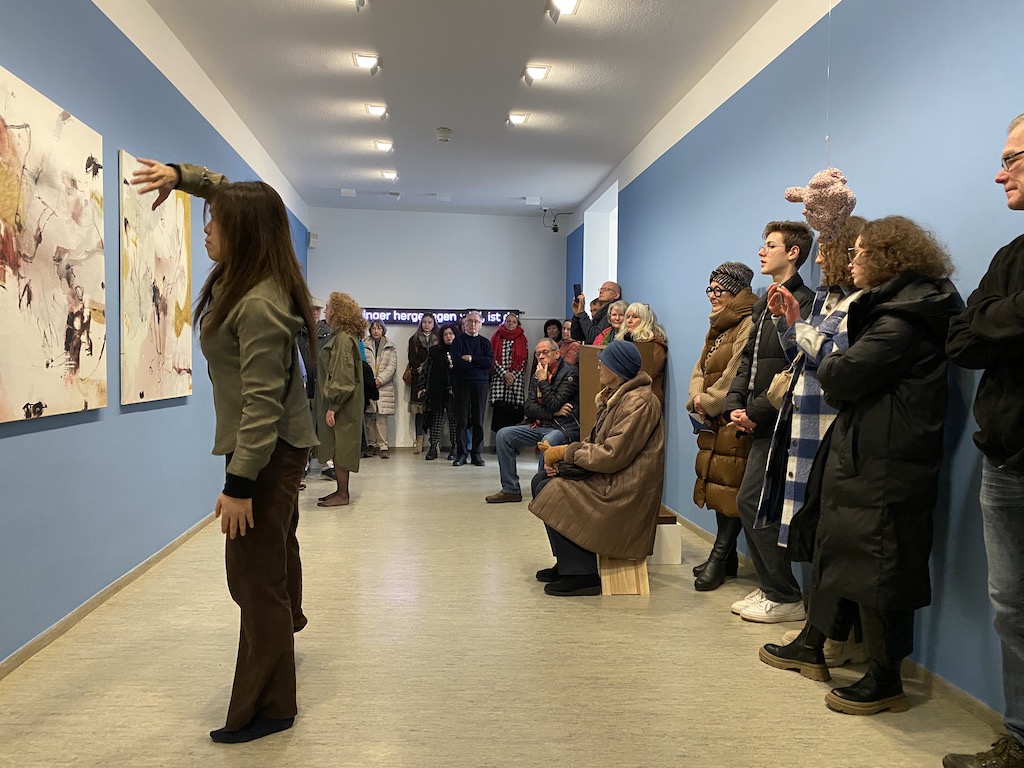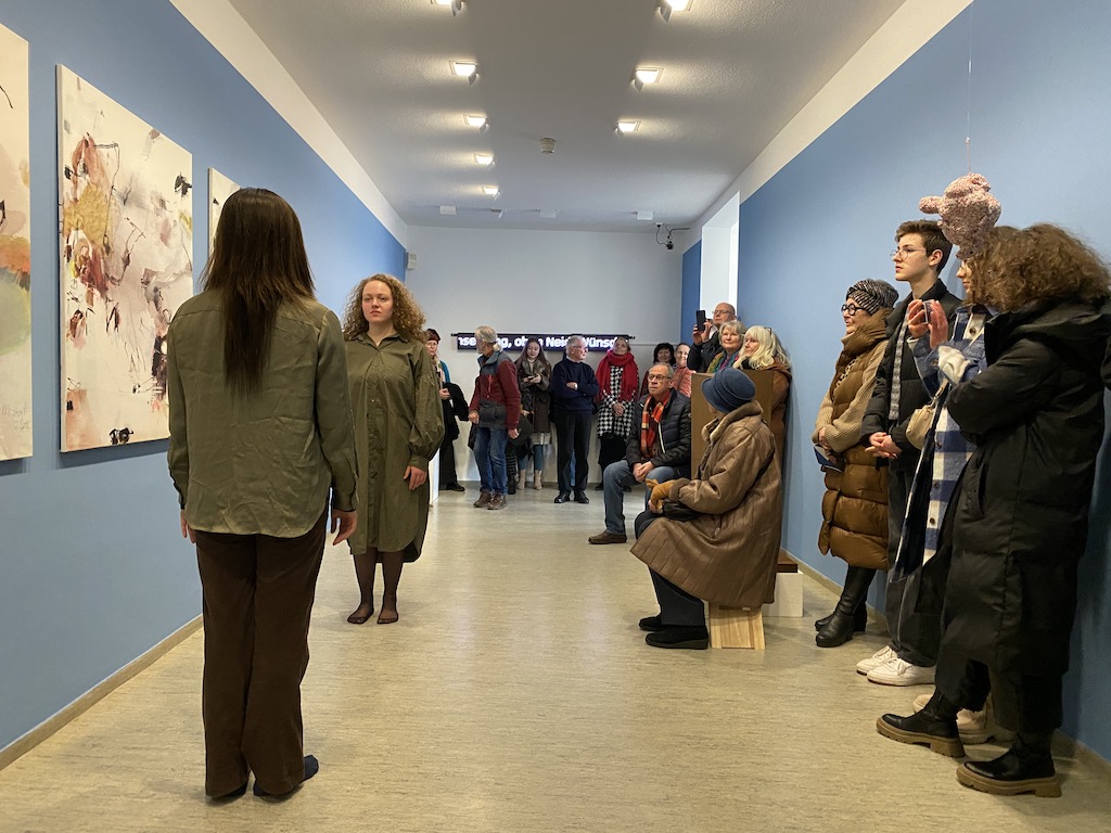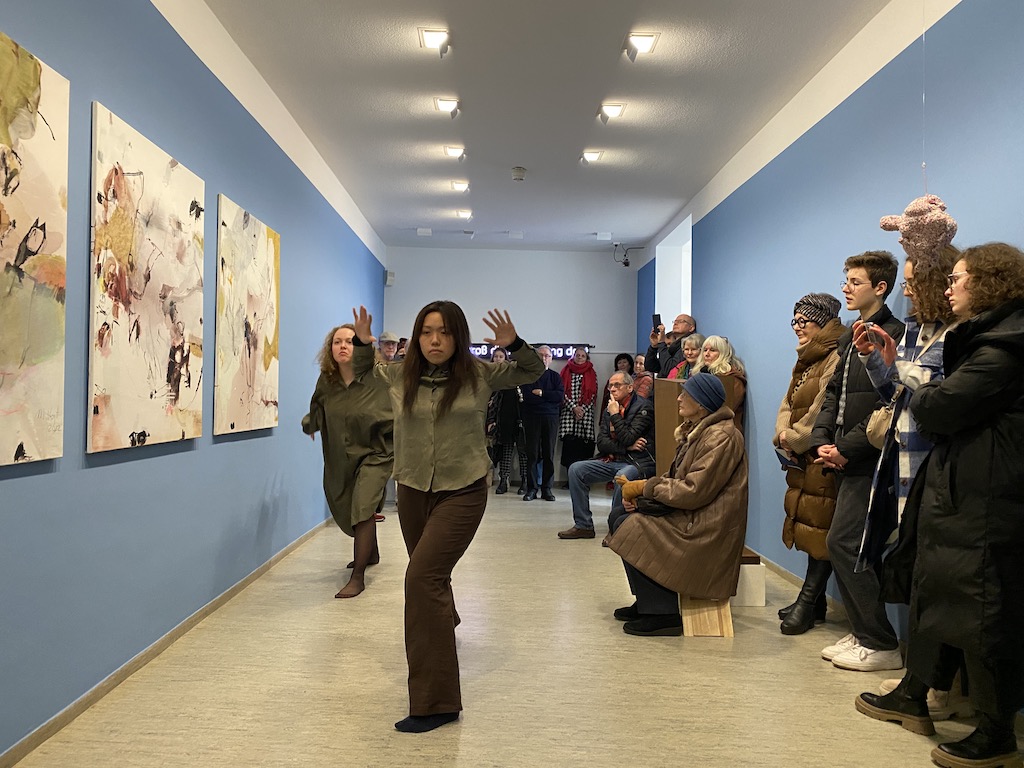 Tanzperformance mit Bezug auf meine Bilder von Studentinnen der Musikhochschule Trossingen.